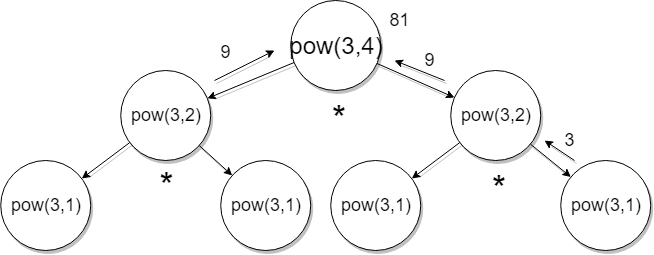 If you will look over the previous divide and conquer approach recursive diagram, you will find out that at each step we are recalculating the power of the base at each level i.e. same power is counted twice.