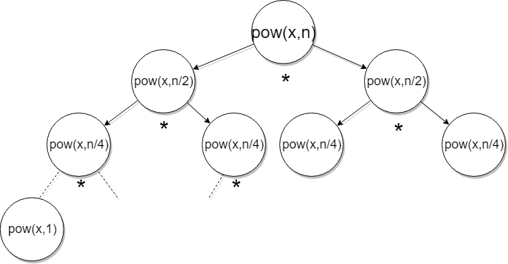 power(base, expo) = power(base, expo/2) * power(base, expo/2)