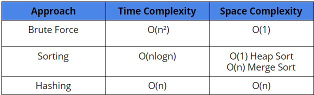 Space Complexity = 2* O(n) = O(n) for storing the HashMap