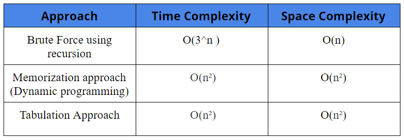 Tabulation is the most optimized solution and works in a bottom-up approach, it comes after we have done memoization. Since it is quite clear that this problem has dependencies on smaller problems discussed in the above section.