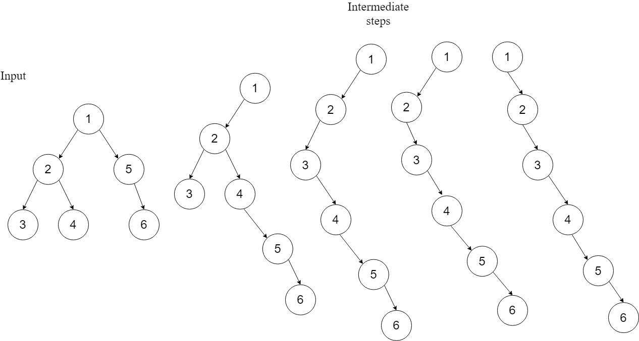 If you observe how the tree gets flatten then it is clear that for each subtree’s root node
