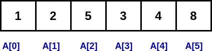 In the above image, [1, 2, 5, 3, 4, 8] are the elements of the array and 0, 1, 2, 3, 4, and 5 are the indexes of the elements of the array.