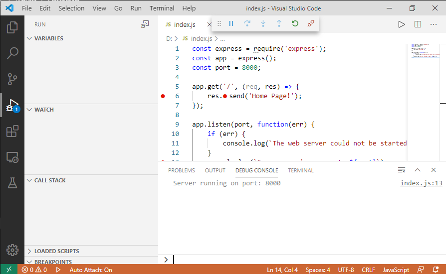 Setting up VSCode Node.js Debugger