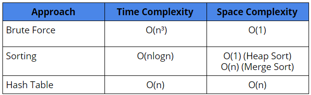 Space Complexity: O(n), for the Hash Table