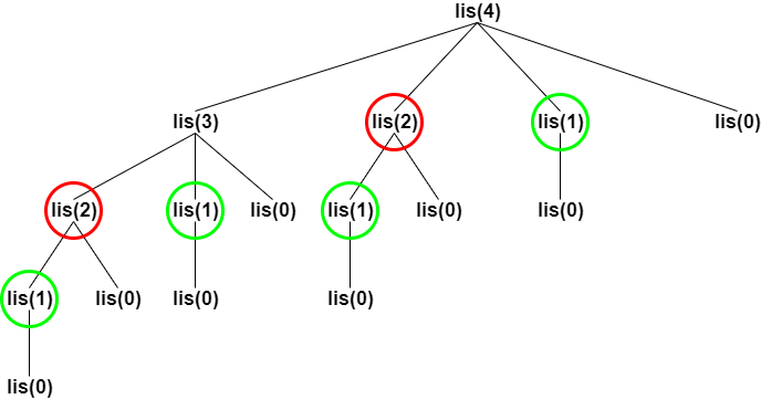 As you can clearly see in the recursion tree, there are overlapping subproblems and also holds an optimal substructure property. This means we could improve the time complexity of our algorithm using Dynamic Programming.