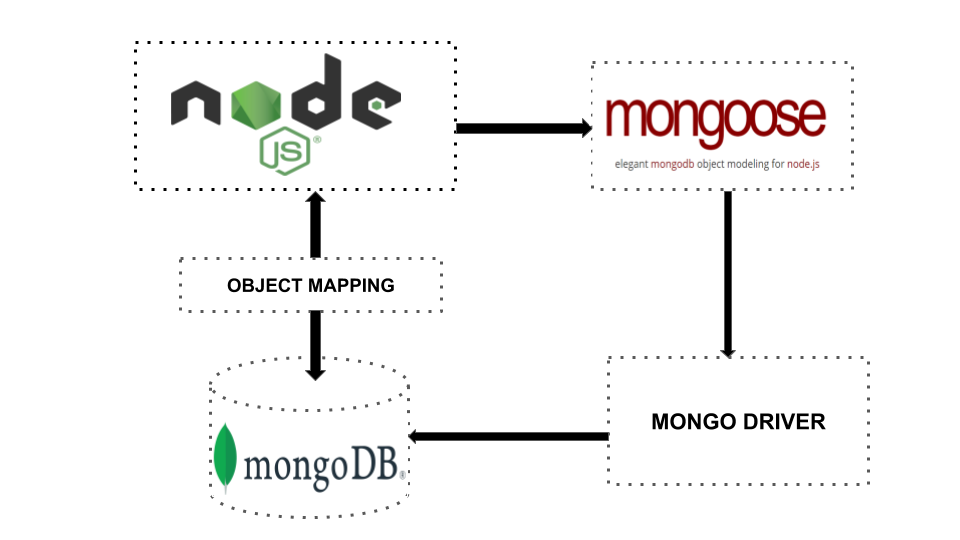 Mongoose which is an ORM (Object-relational mapping) is a fantastic NPM(Node Package Manager) library. It manages relationships between data, provides schema validation, and is used to translate between objects in code and the representation of those objects in MongoDB. It makes easy to structure your data. You can do everything that MongoDB native driver can do, with the help of Mongoose also. Instead of writing all that boilerplate code yourself, most people prefer to use Mongoose to get the job done. Mongoose provides an incredible amount of functionality around creating and working with schemas. The following diagram helps in visualizing how Mongoose works to deliver database information cyclically with our Mongo client and Node.