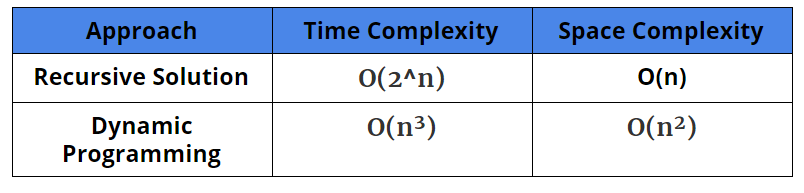 Suppose we have a function B(i, j) that computes the minimum number of required operations for multiplying a chain of matrices from matrix i to matrix j. So in a range i to j, we select from j — i possibilities, from i until j — 1. Those possibilities in turn call B recursively until it hits the base case where i = j. We can thus derive the general solution img4 recursion formula