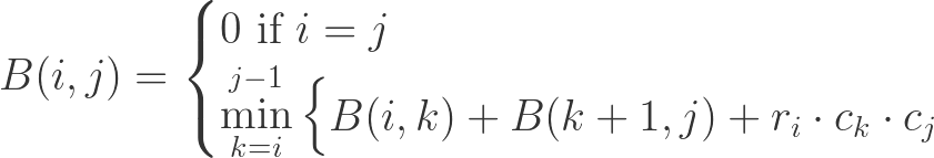 B(i, j) = B(i, k) + B(k + 1, j) + p[i - 1] * p[k] * p[j]