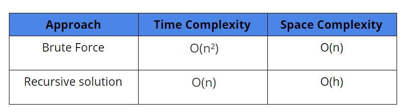 Space Complexity: O(h), where h is the maximum height of the tree.