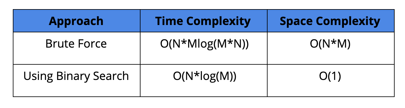 Space Complexity: O(N*M)