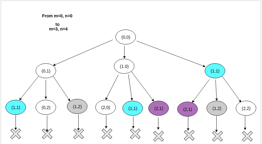 The above tree is for the source S(0,0) and the Destination D(2,3). We can easily see there are various cells for which the cost C is being calculated many times. In order to avoid this redundancy of calculations, we can use some extra memory for storing the result and retrieving it later in O(1) time. This is how we will try improving the efficiency of the above problem.