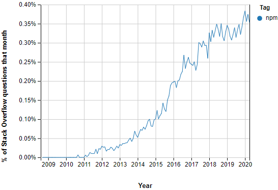 npm(node package manager) has been an extremely popular choice among developers evidenced by the amazingly increasing search trends at the almighty StackOverflow