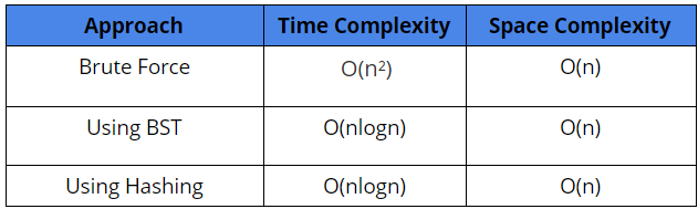 Although, if we use the idea of Balanced Binary Search Tree such as AVL Tree or Red-Black Tree, the worst-case time complexity for searching would be O(logn). Here we will be assuming a Balanced BST implementation in the pseudo-code.