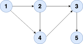 For example-The topological sort for the below graph is 1, 2, 4, 3, 5
