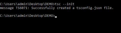 If everything goes well, a "message TS6071: Successfully created a tsconfig.json file" will be logged on to the console.