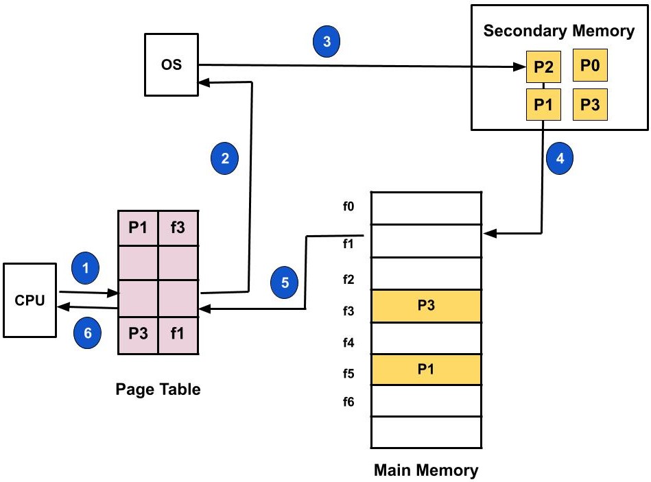 Lets us understand this with the help of an example. Suppose we have to execute a process P having four pages as P0, P1, P2, and P3. Currently, in the page table, we have page P1 and P3.