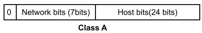 The IP address belonging to Class A uses only the first octet to identify the network and the last three octets are used to identify the host.