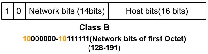 The IP address belonging to Class B uses the first two octets to identify the network and the last two octets are used to identify the host.