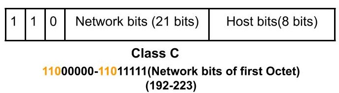 The IP address belonging to Class C uses the first three octets to identify the network and the last octet is used to identify the host.