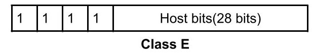 The IP address belonging to Class E has the first four bits of the first octet set as 1111. The remaining bits are the host bits.