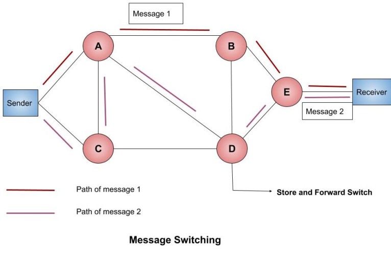 In-circuit switching when the source does not have enough data to transmit, the resources are unnecessarily kept idle. To avoid such situation Message switching is used. Message switching is a connectionless network in which the data from the source to destination is sent in the form of message units. A message is a logical unit of the information that can be of any length. The sender and the receiver are not directly connected. There are many intermediate nodes which ensure the delivery of the message to the destination. The message switching was used in sending telegrams.