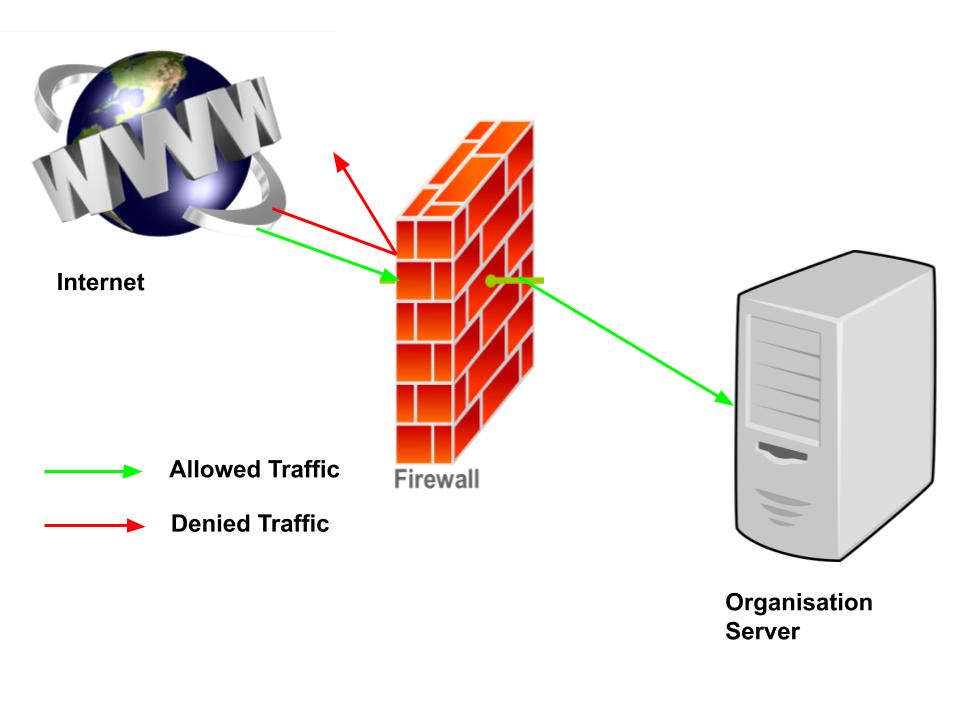 The firewall establishes a secured network and protects the internal network from the outside network or internet. In the above diagram, the firewall allows some traffic while it rejects malicious traffic.