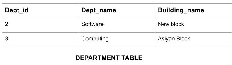 Let's now understand the concept of Database and DBMS with the help of an example of a company's database. For this example, we will see how data is stored in Relational DBMS(a type of DBMS) using tables. This database maintains information about employee, department, projects.