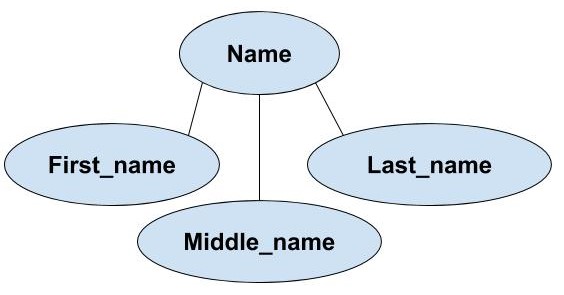 Composite Attribute: This attribute can be further divided into other attributes. Example: Name of a student can be further divided into first name, middle name and last name.