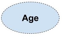 Derived Attribute: The value of this attribute are derived from some other attributes. This is done mainly because the value for such attribute keeps on changing. It is represented by a dashed oval. Example: The value of age attribute is derived from the DOB(date of birth) attribute.