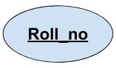 Key Attribute: Key attribute is used to uniquley identify the records and it represents the primary key of the table. It is represented by oval and the text in it is underlined. Example: If we have Roll_no as the key attribute then it would be represneted as: