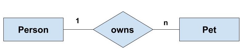 One-to-Many Relationship: Such a relationship exists when each record of one table can be related to one or more than one record of the other table. Example: If there are two entities 'Owner' and 'Pet' then each owner can have more than one pet but each pet is owned by only one owner.