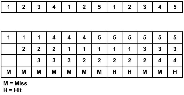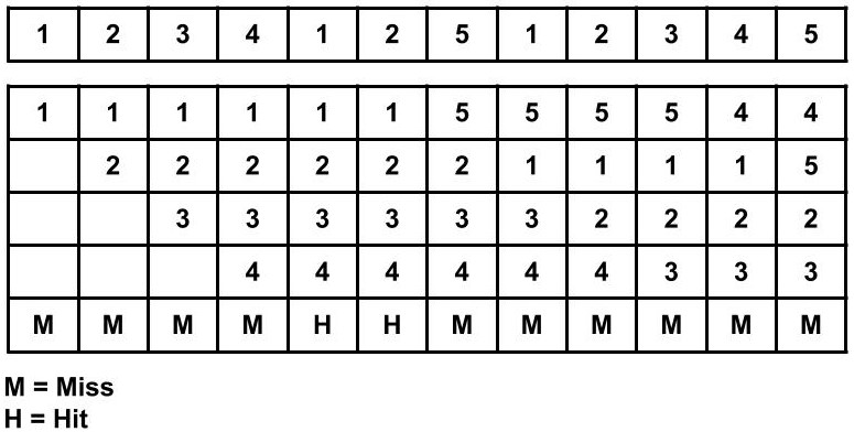 Page Fault ratio = 9/12 i.e. total miss/total possible cases