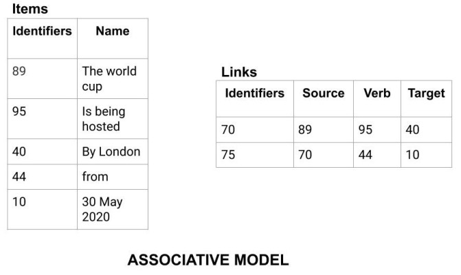 Example: Let us say we have a statement "The world cup is being hosted by London from 30 May 2020". In this data two links need to be stored: