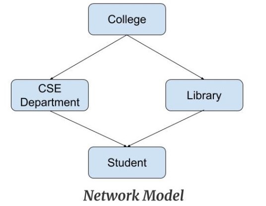 This model is an extension of the hierarchical model. It was the most popular model before the relational model. This model is the same as the hierarchical model, the only difference is that a record can have more than one parent. It replaces the hierarchical tree with a graph. Example: In the example below we can see that node student has two parents i.e. CSE Department and Library. This was earlier not possible in the hierarchical model.