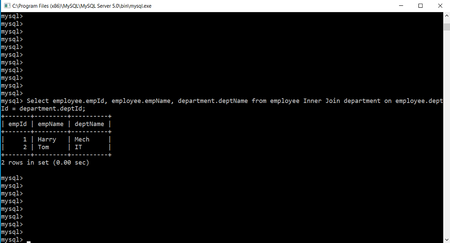 Select employee.empId, employee.empName, department.deptName from employee Inner Join department on employee.deptId = department.deptId;