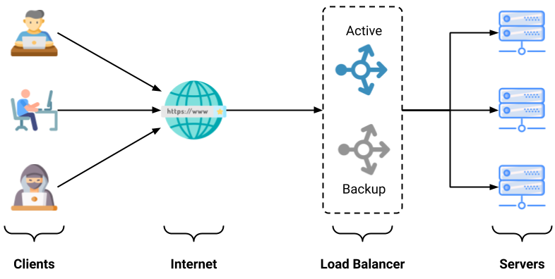 To avoid the case of failure of the Load Balancer, we can add one backup Load Balancer. At a time, only one Load Balancer will be active and the other Load Balancer will keep on watching the status of active Load Balancer. So, in case of failure, the other Load Balancer will take over the charge and do the Load Balancing thing.