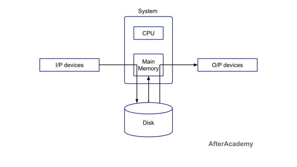 From the above image, we can see that the input data is stored in some kind of secondary device and this data is then fetched by the main memory. The benefit of this approach is that, in general, the CPU works on the data stored in the main memory. Since we can have a number of input devices at a time, so all these input devices can put the data into the disk or secondary memory. Then, the main memory will fetch the data one by one from the secondary memory and the CPU will execute some instruction on that data. Both the main memory and secondary memory are digital in nature, so taking data from the main to secondary is very fast. Also, when the CPU is executing some task then at that time, the input devices need not wait for its turn. They can directly put their data in the secondary memory without waiting for its turn. By doing so, the CPU will be in the execution phase most of the time. So, the CPU will not be idle in this case.