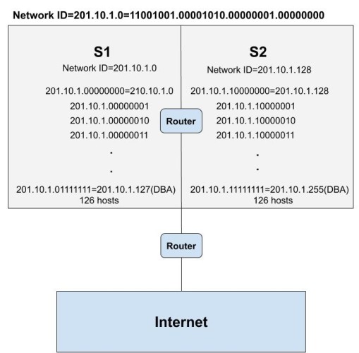 In the 1st subnet network(S1), we have a total of 126 hosts only because the first and last IP address is reserved for the network ID and the Direct Broadcast Address respectively. Similarly, in the 2nd subnet network, we have 126 hosts.