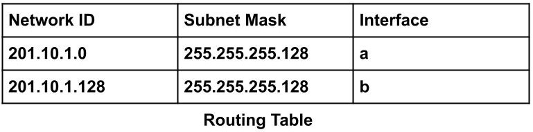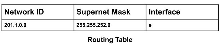 The router inside the network will have the routing table which will be as follows: