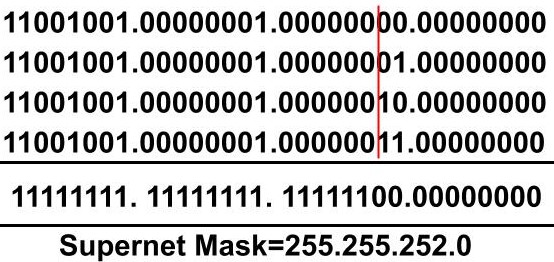 Example: Suppose we have four small networks with network ID as 201.1.0.0, 201.1.1.0, 201.1.2.0, 201.1.3.0.