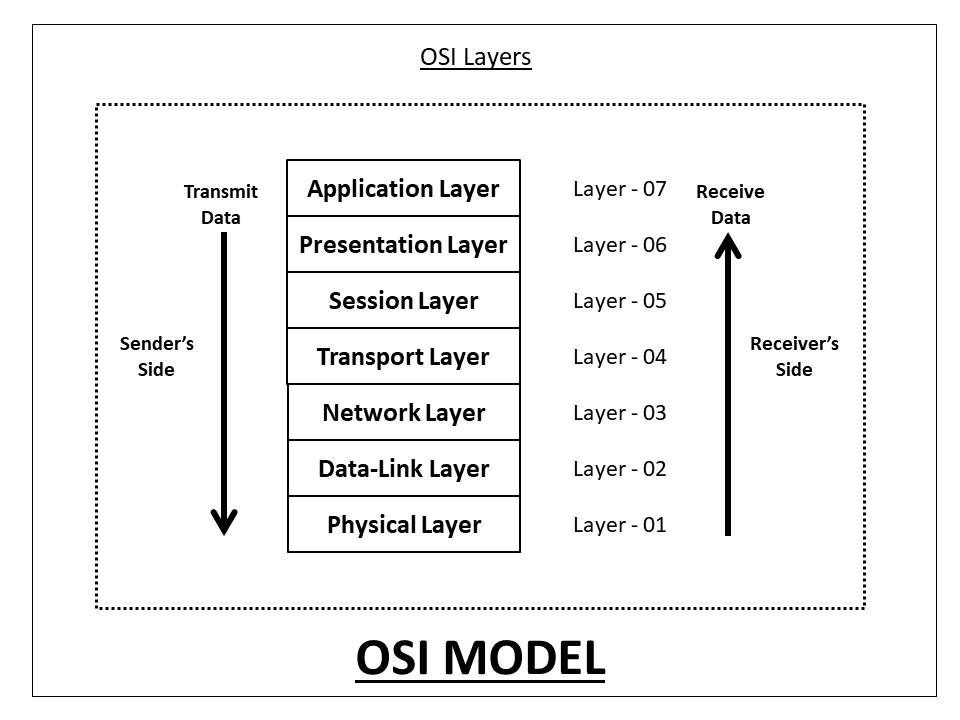 OSI model is a layered framework that allows communication between all types of the computer system. It has seven layers. OSI model is introduced by ISO(International Organization for Standardization) in 1984. Each layer has its own functionalities and calls upon the services of the layer just below it. These layers are a package of protocols that are implemented by computers to connect in the network. In other words, the OSI model defines and is used to understand how two computers connect with each other in a computer network.