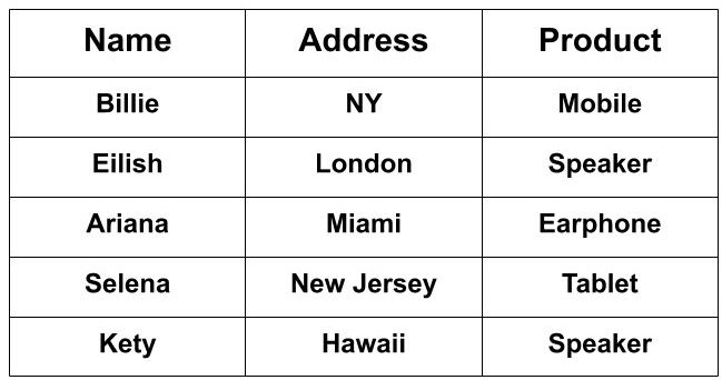 Examples: Suppose we have two tables. First, the Customer_Details Table which has attributes as Customer_id, Name, Address, Age.