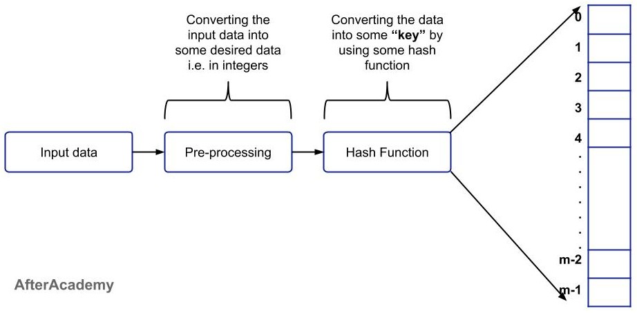 Our data can be of any form i.e. it can be in integer or string or some other data type. But our main aim should be to convert that data into an integer by doing some preprocessing and then apply some hash function to it and map the result in the hash table.